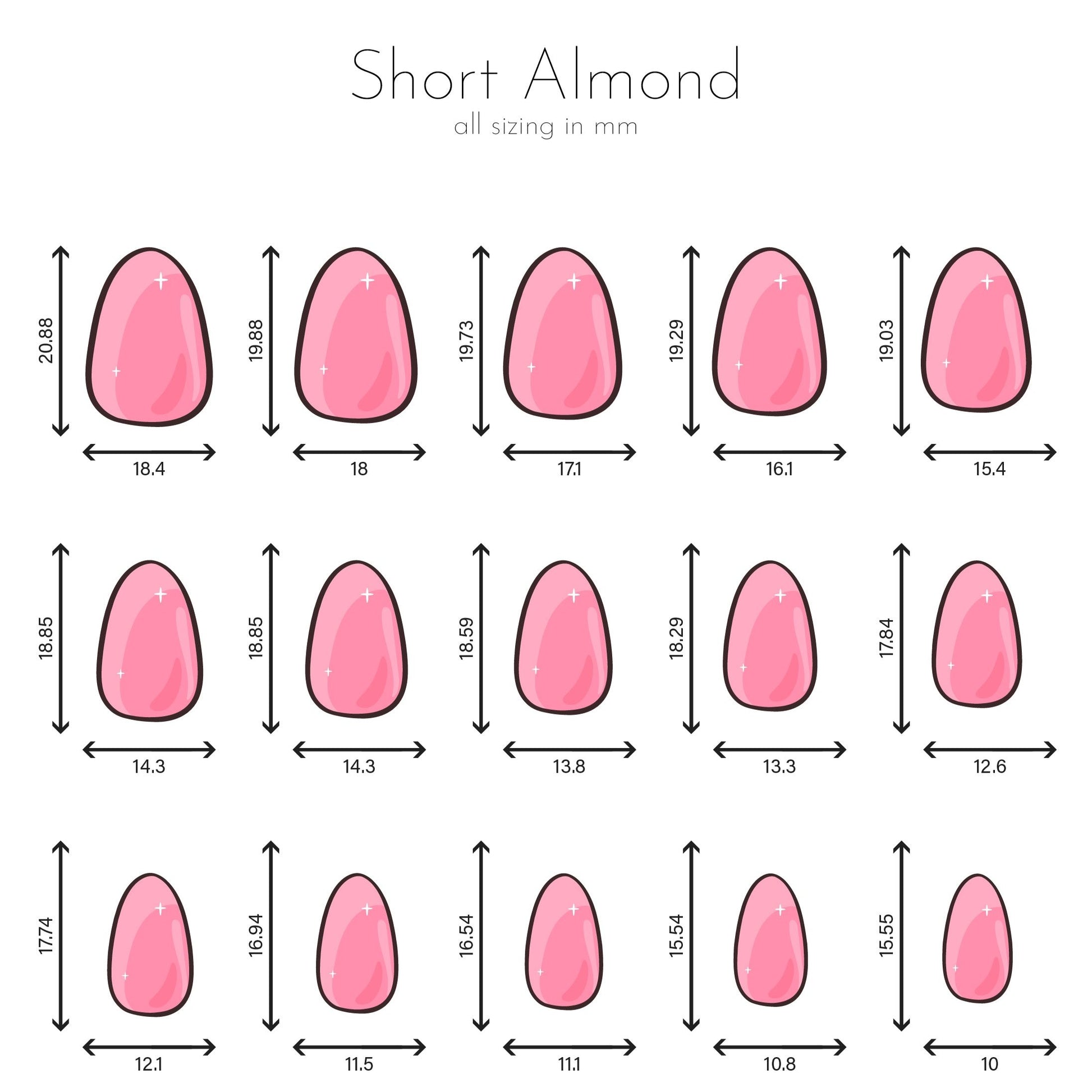 *All nails marked square & long almond have 24 nails with 12 sizes options.